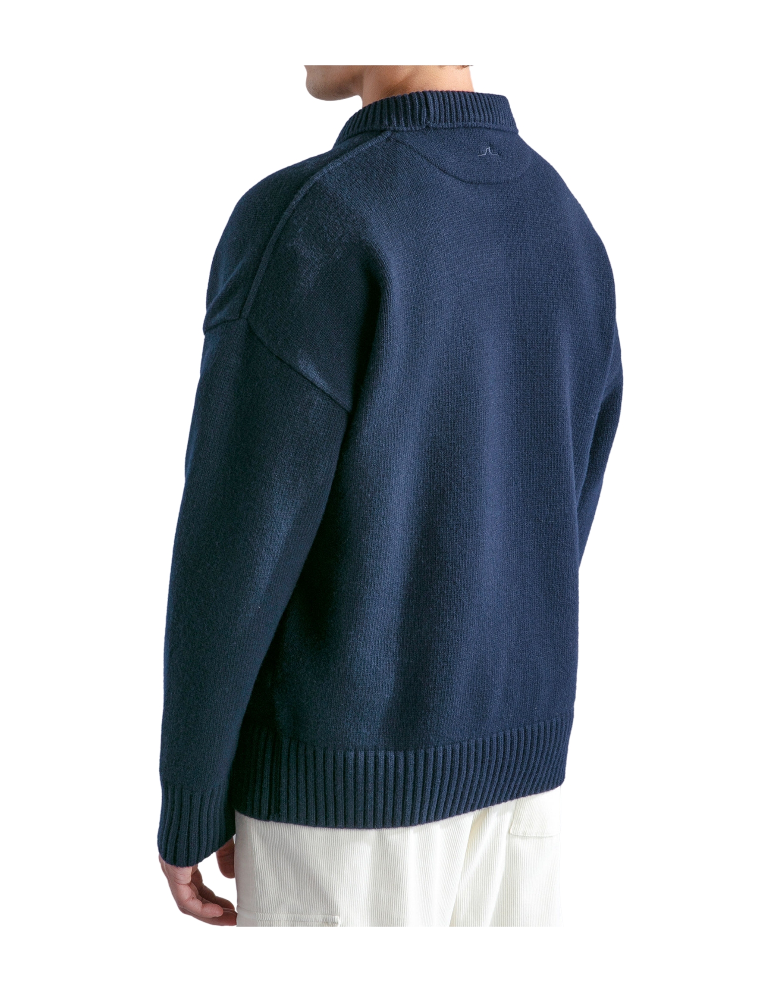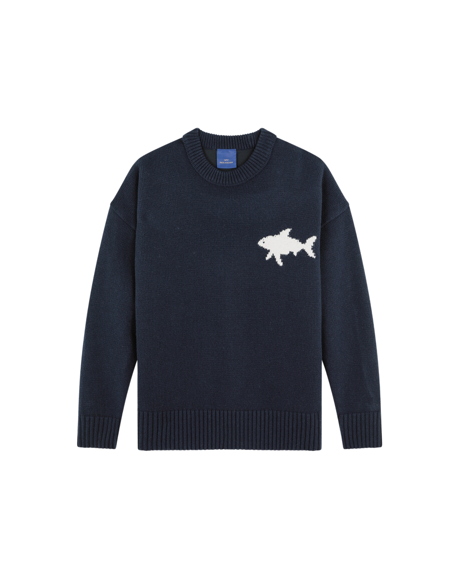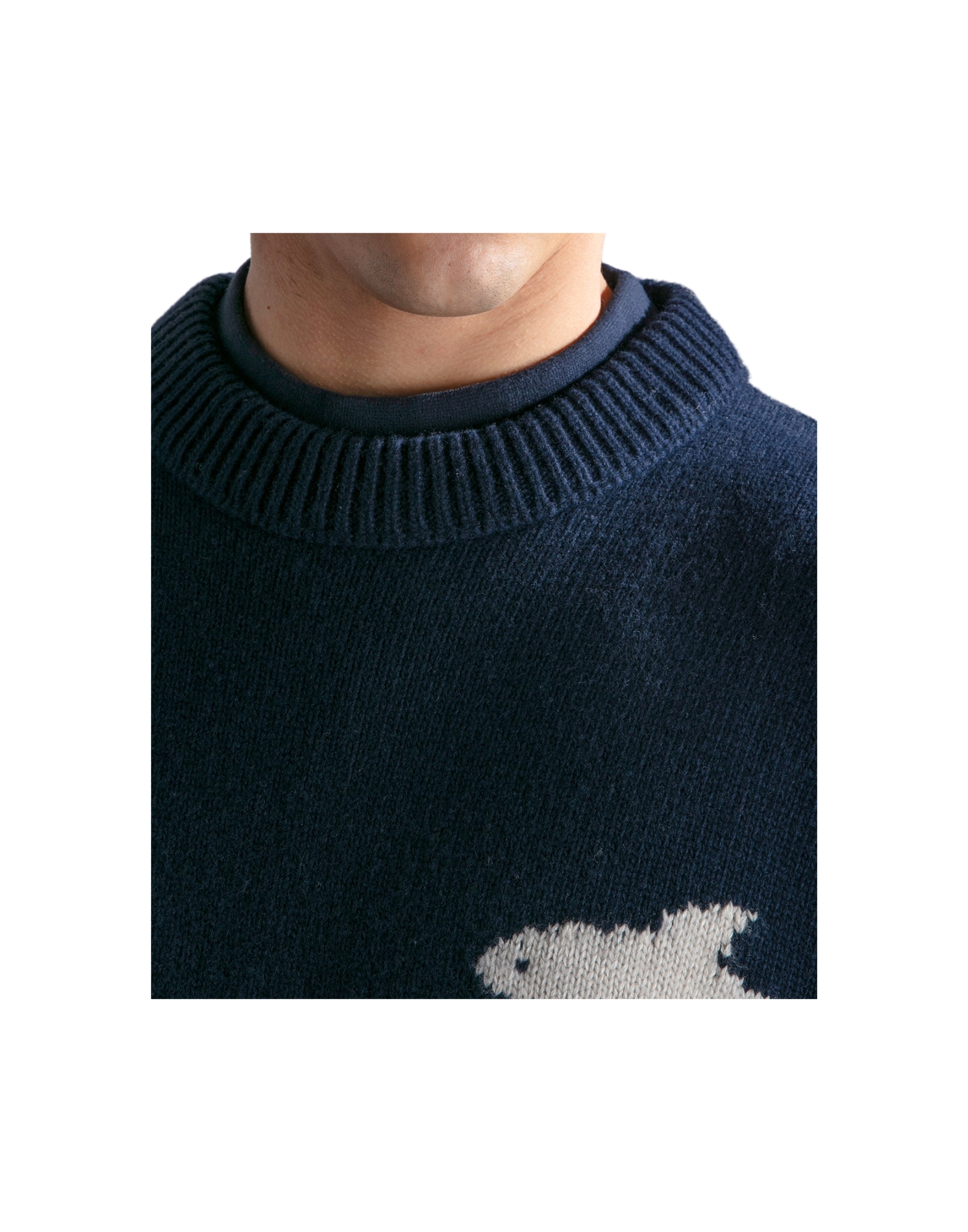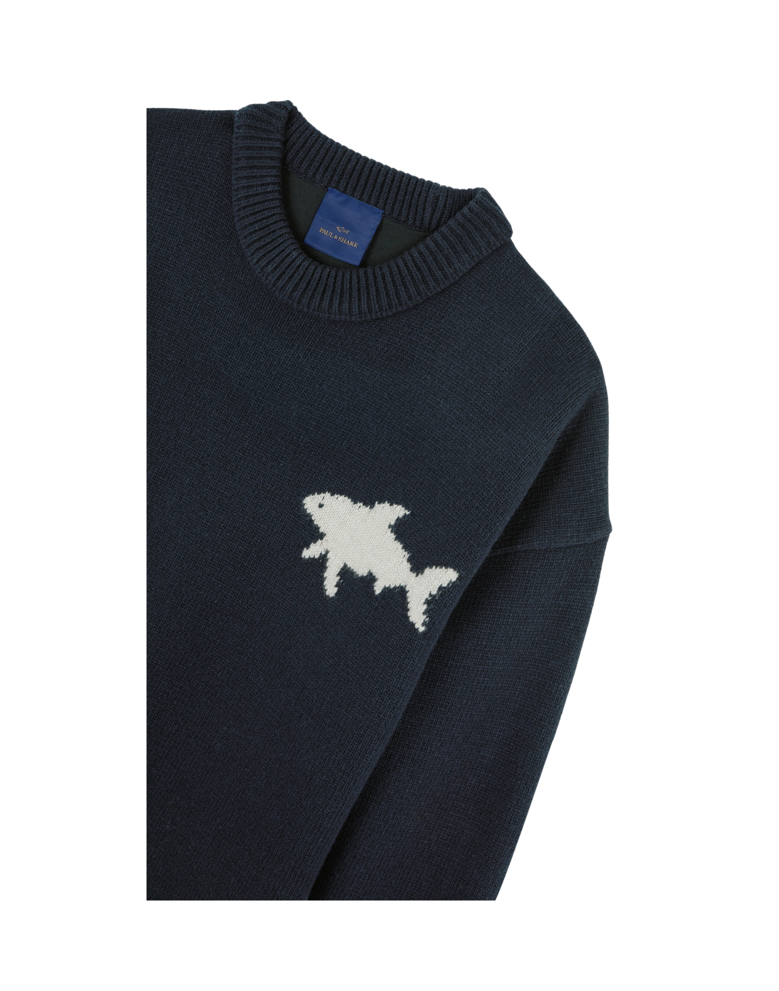 Maglia girocollo in lana riciclata finezza 5 con intarsio Shark sul petto