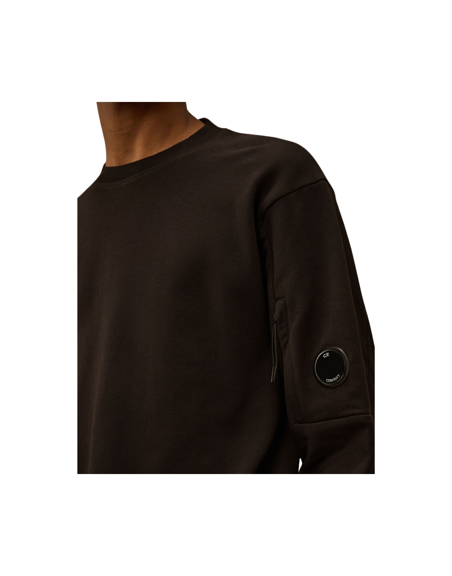 Felpa girocollo realizzata in Diagonal Raised Fleece, un cotone spazzolato a trama diagonale di peso medio. Il tessuto morbido assicura comfort e libertà di movimento. Il capo presenta logo ricamato sul retro del collo, liconica Lente di C.P. Company, polsini e orlo a costine. Regular fit.