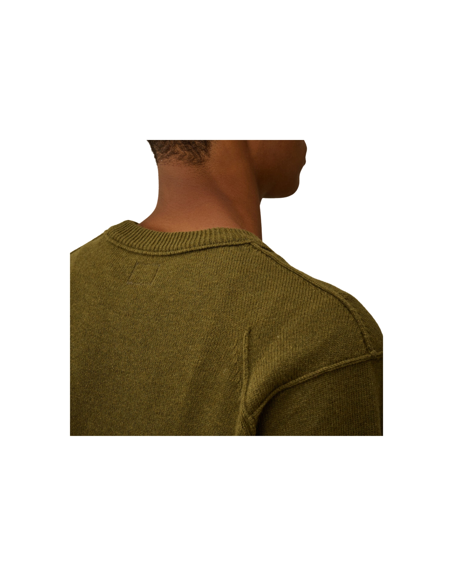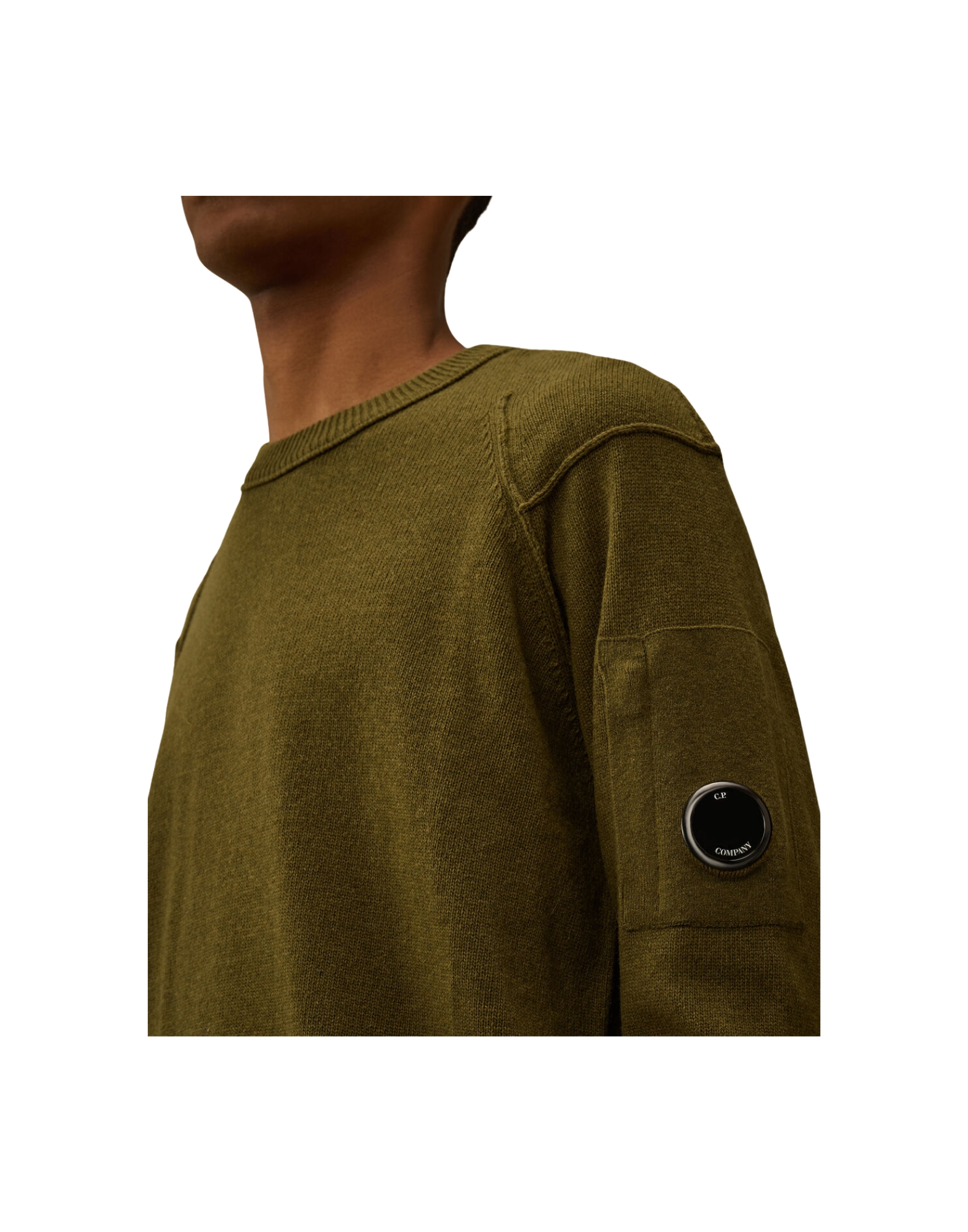 Maglione girocollo realizzato in Lambswool GRS. La certificazione Global Recycled Standard garantisce il rispetto di criteri ambientali e sociali in tutte le fasi della filiera. Il capo presenta liconica Lente di C.P. Company, cuciture a contrasto, polsini e orlo a costine. Finezza 7. Regular fit.