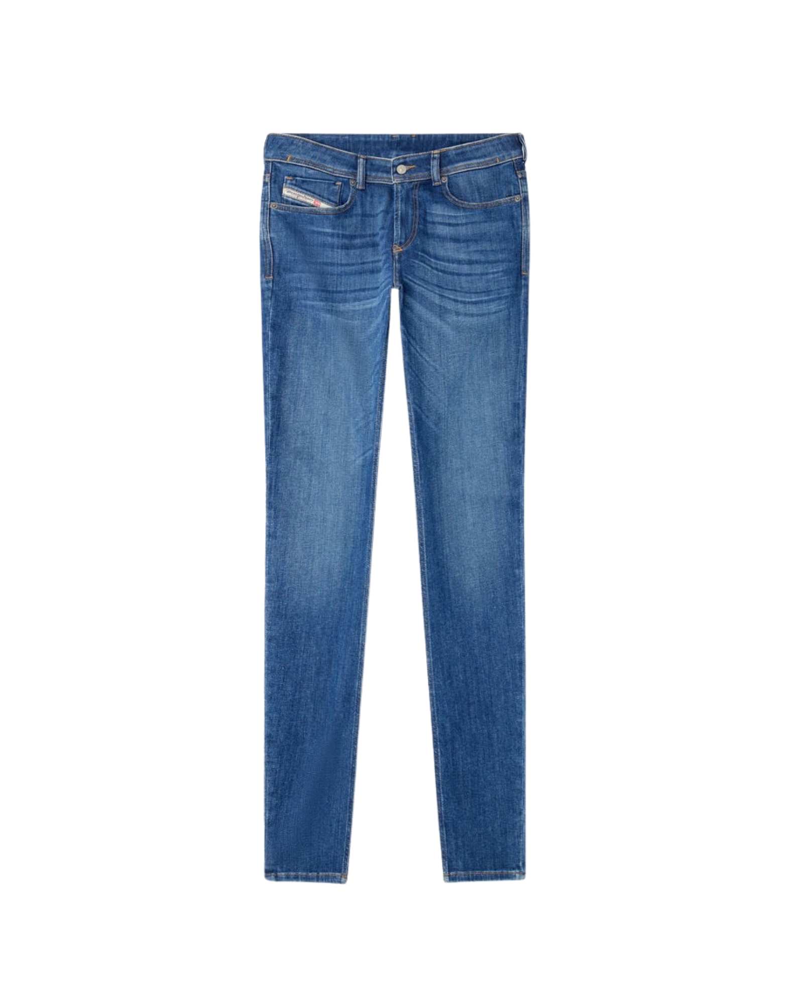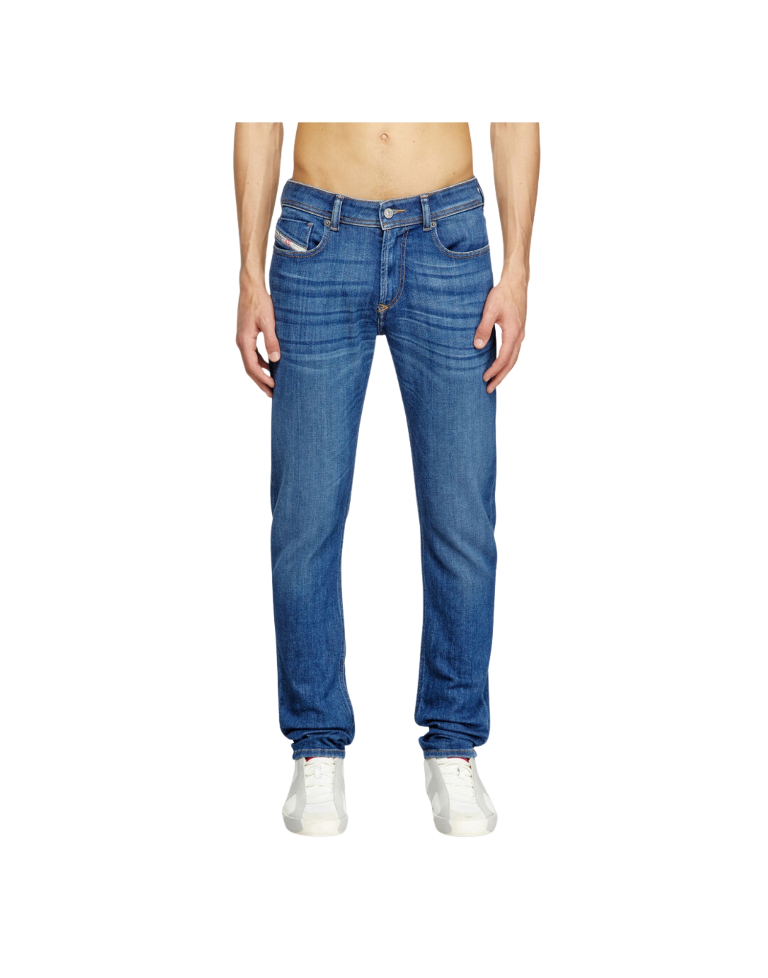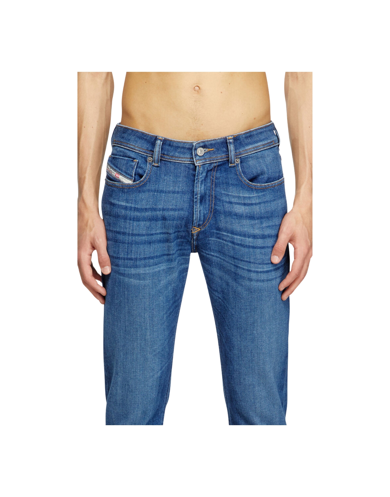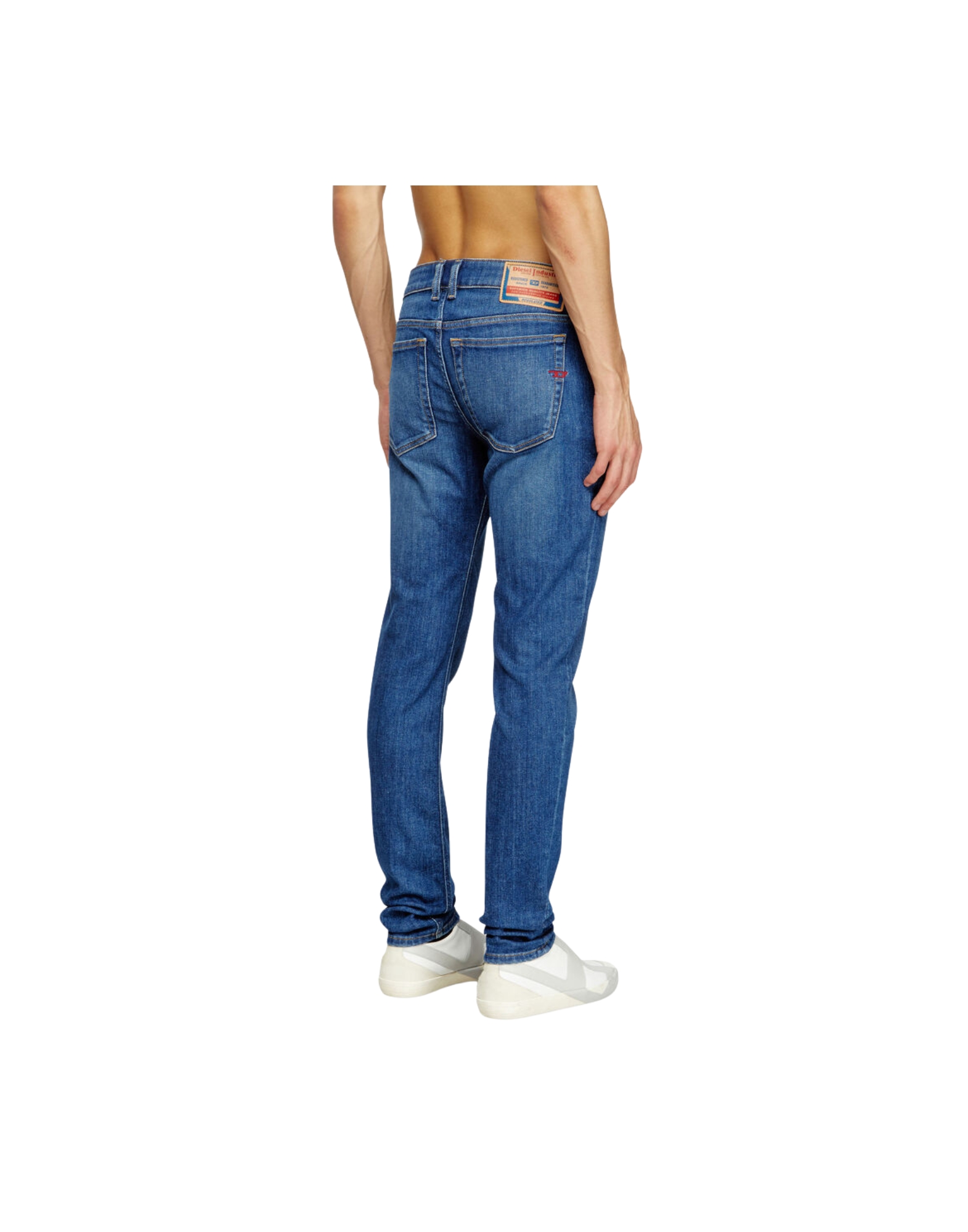 Lavaggio blu medio dal finish pulito, parte della selezione DNA di Diesel. Il tessuto stretch è realizzato con una percentuale di cotone rigenerativo.