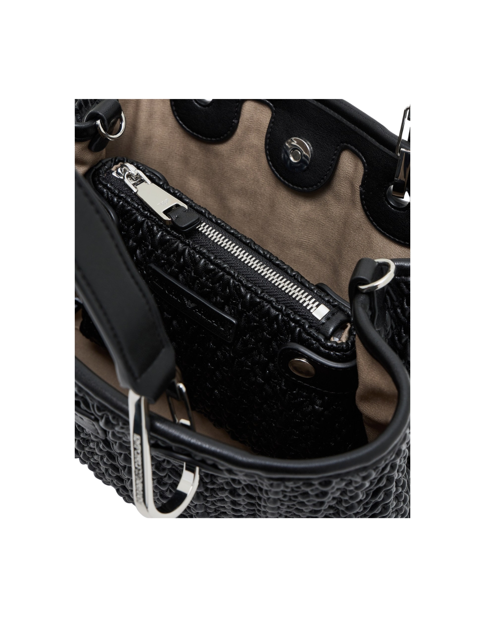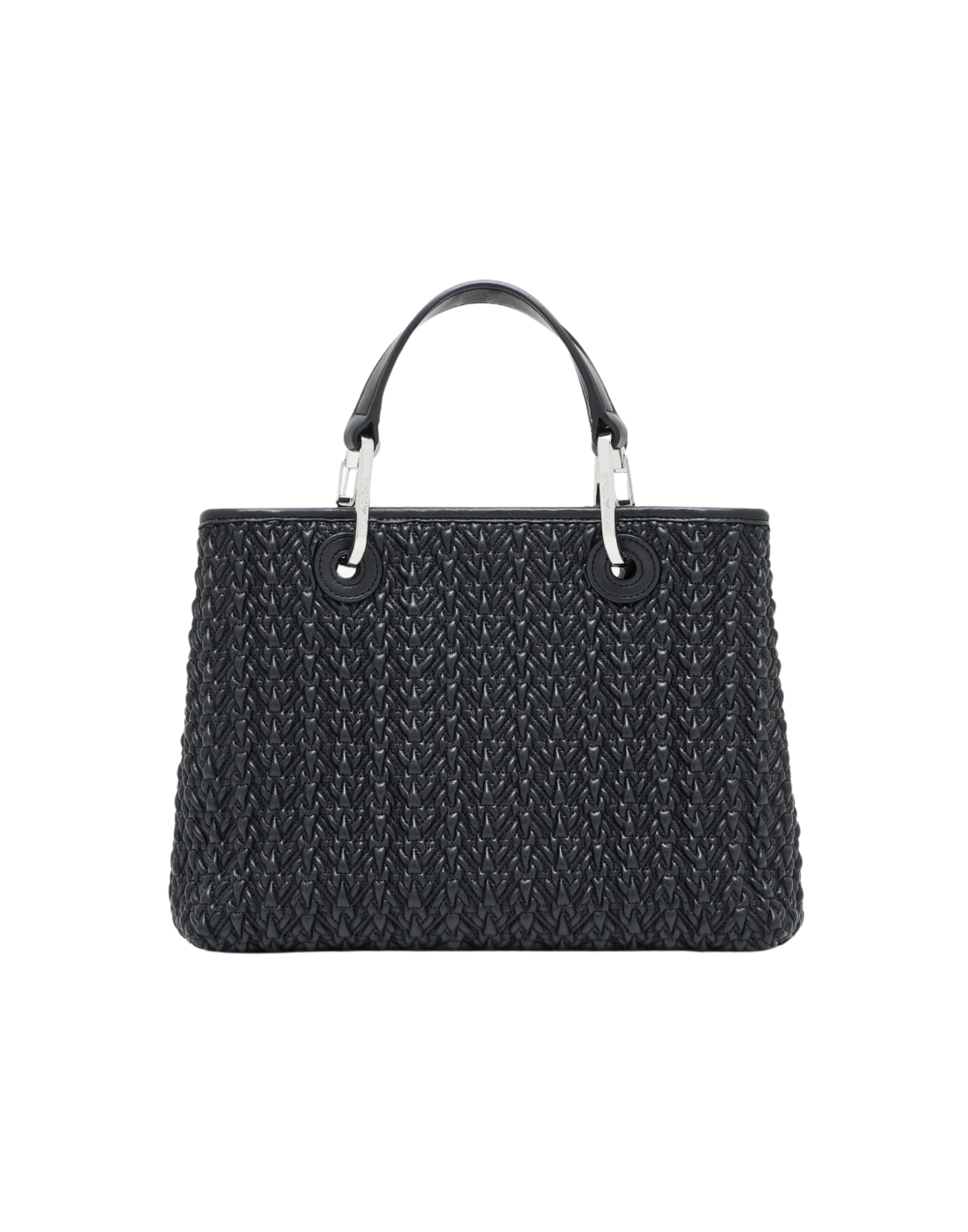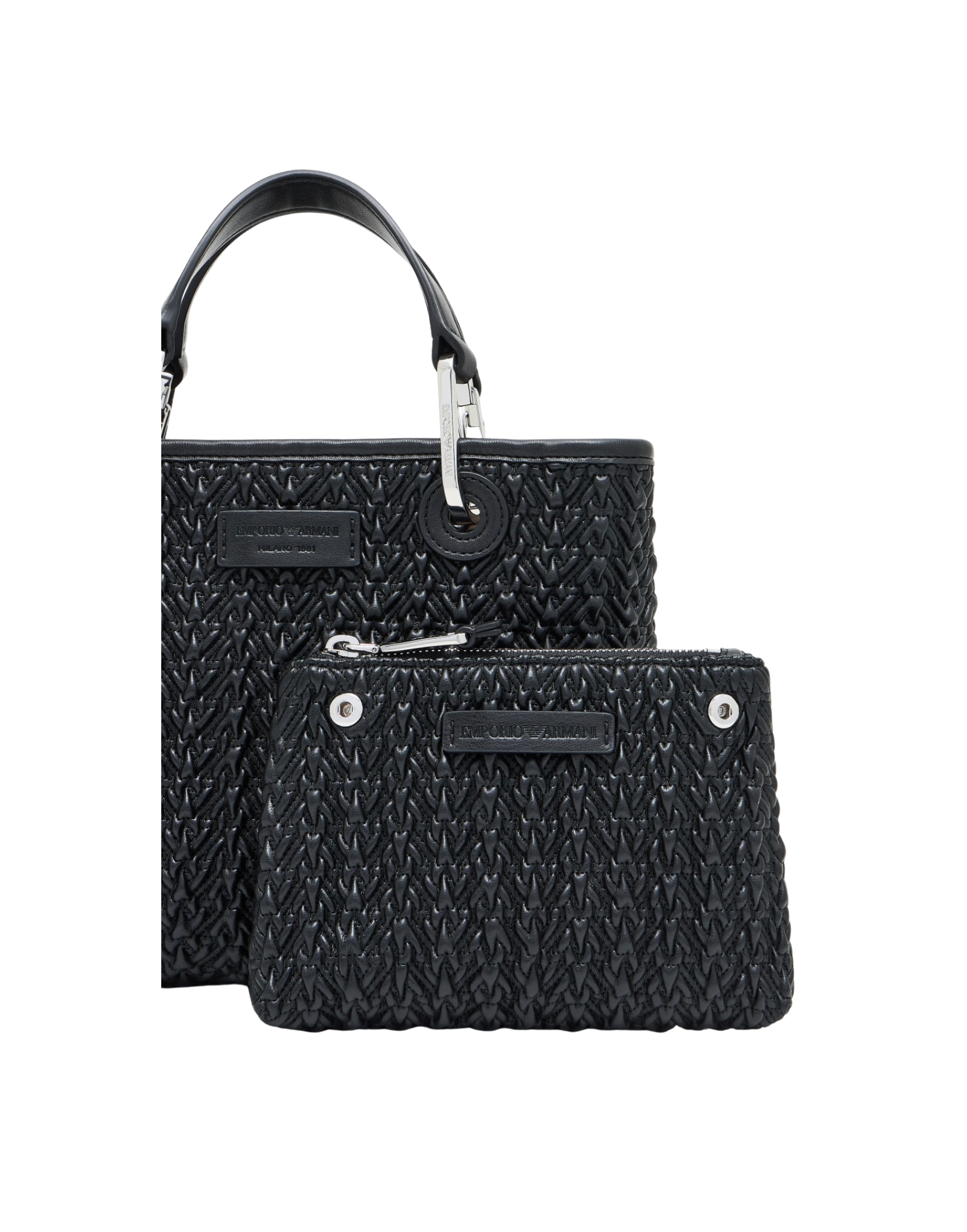 Shopper modello piccolo dalla particolare lavorazione trapuntata, chiusura a magnete e logo in tono. Item impreziosito da moschettoni logati e tracolla removibile. Provvista di pouch interna coordinata con zip. Questo articolo appartiene alla linea MyEA, la proposta Emporio Armani di borse iconiche ed esclusive più rappresentative della Maison. Scegli il modello e completalo con gli accessori della linea che più ti rispecchiano.