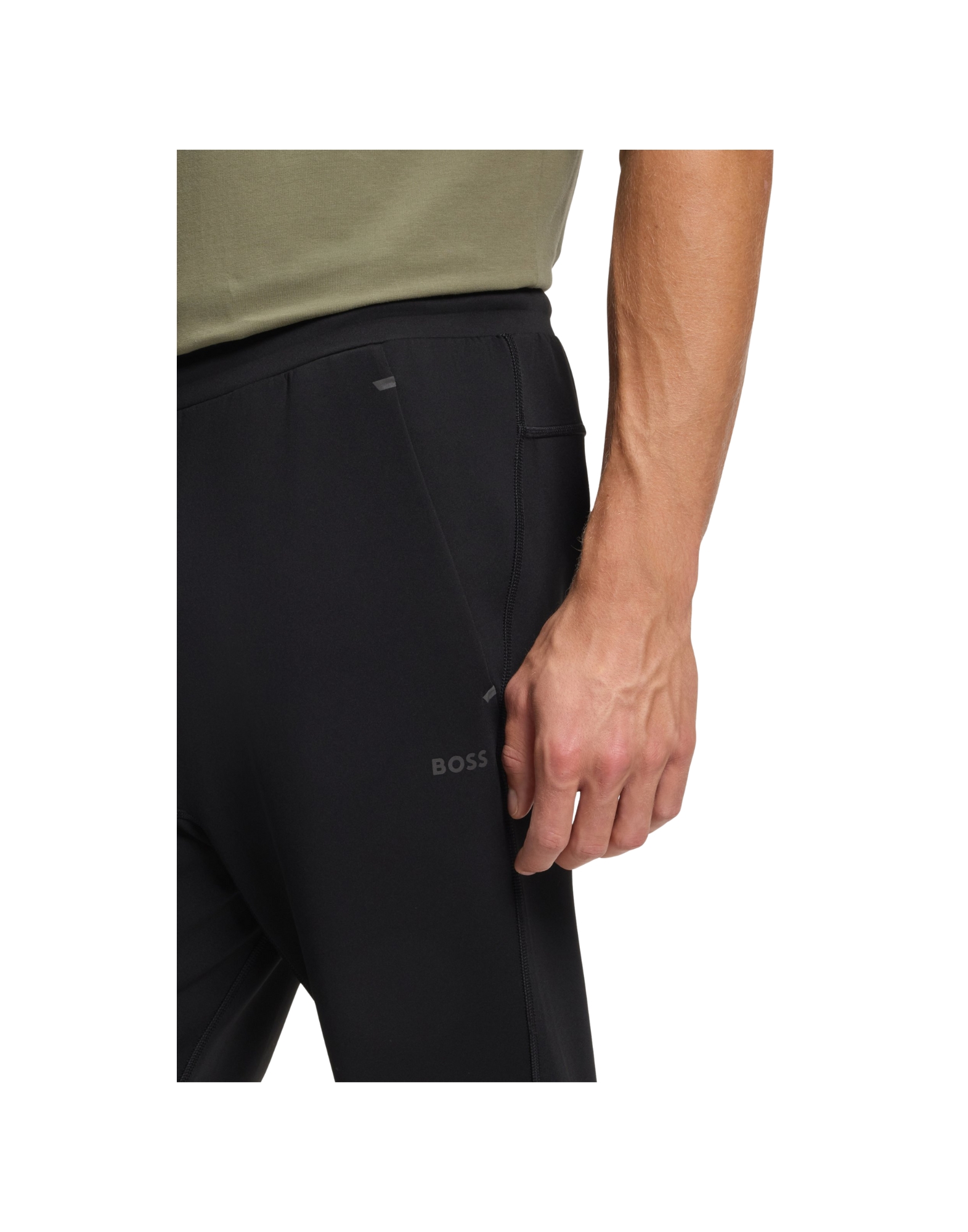 Realizzati in materiale ad asciugatura rapida con cuciture interne flatlock, questi pantaloni BOSS Uomo offrono un comfort attivo. Taglio straight fit con dettagli riflettenti decorativi. Tasca con zip sicura. Questo prodotto contiene almeno l'80% di materie prime di qualità superiore. Questo prodotto è parzialmente realizzato con poliestere riciclato. HUGO BOSS preferisce utilizzare poliestere riciclato proveniente da scarti tessili pre e post-consumo e si impegna attivamente per sostituire il poliestere derivato dalle bottiglie in PET.