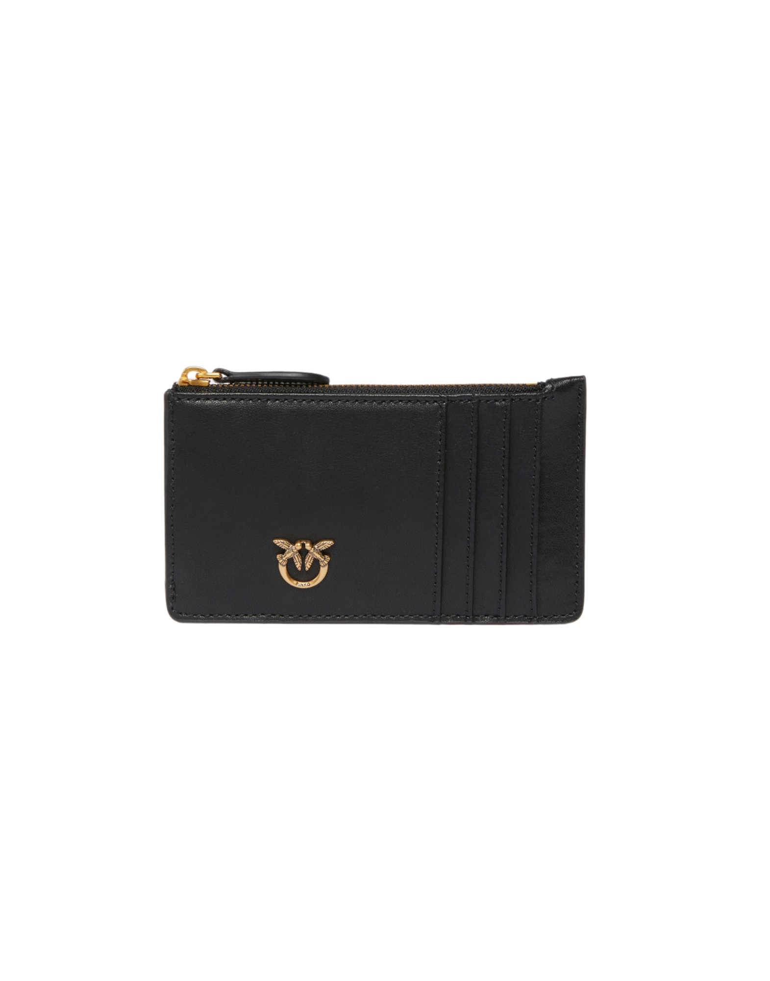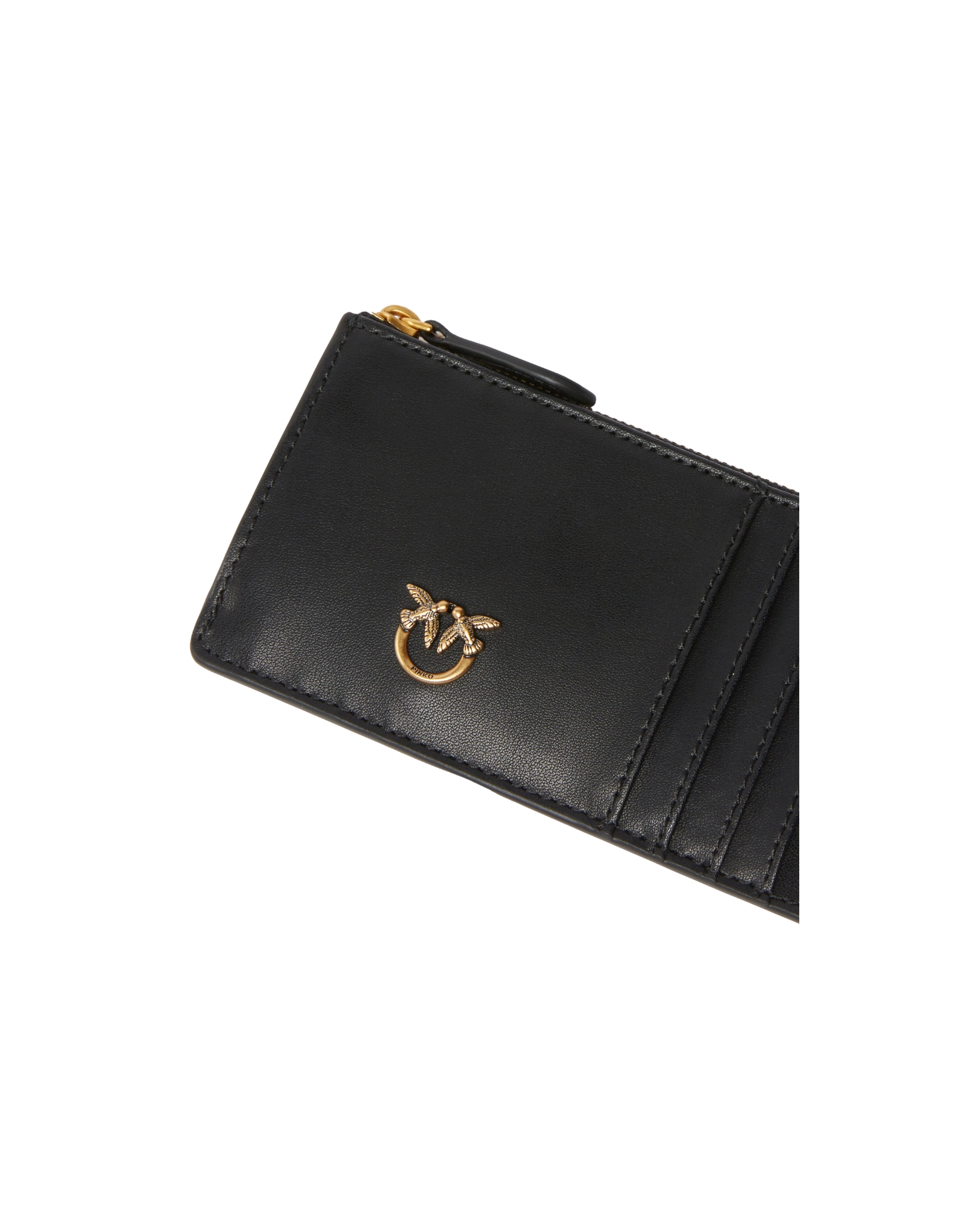 Porta carte di credito in morbida pelle mano seta. Personalizzato con placchetta in metallo logo Love Birds Diamond Cut. L'interno è foderato in polycotton. Chiusura con zip.